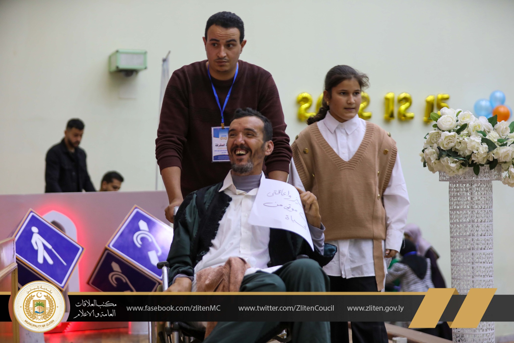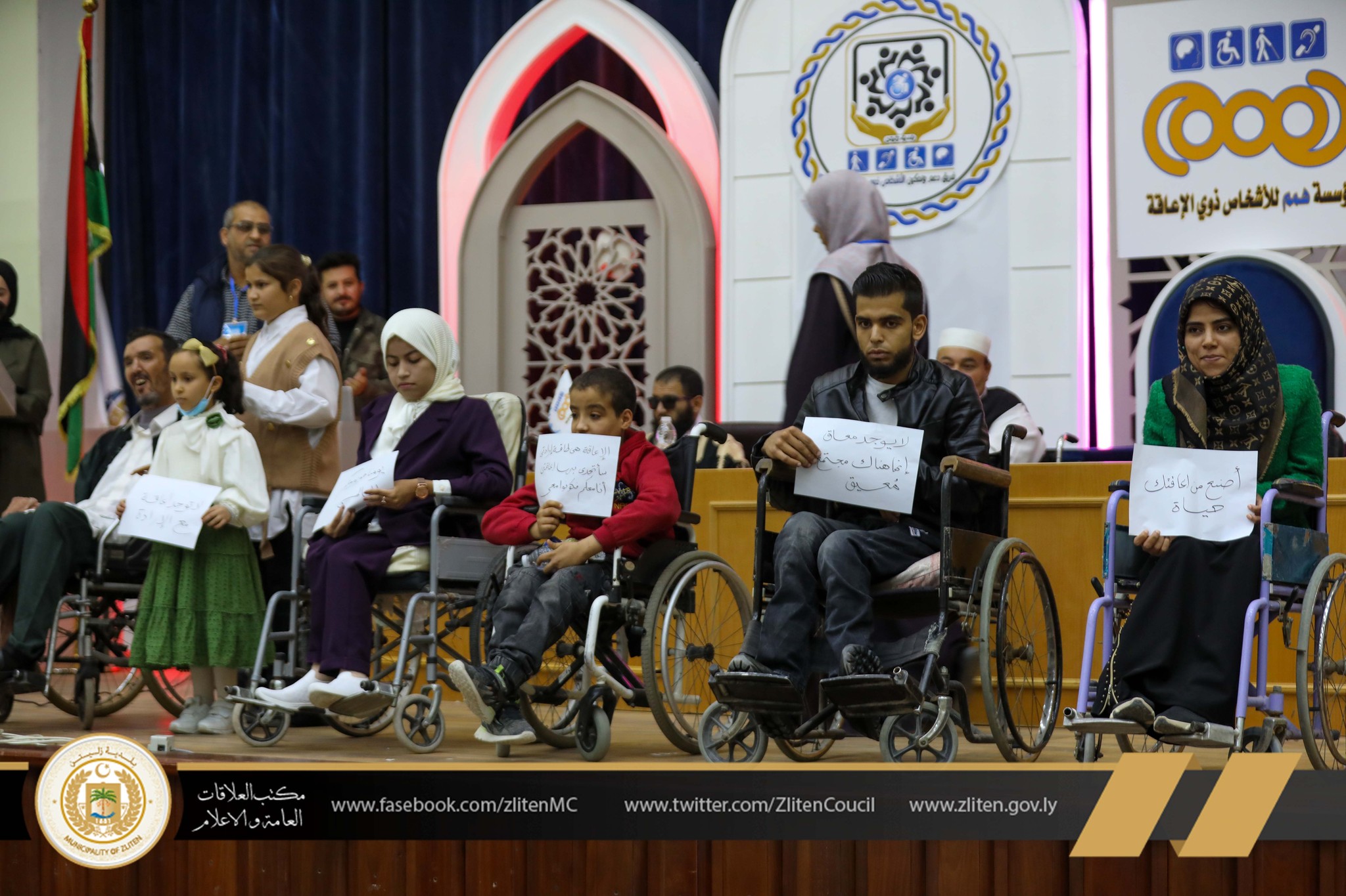 هذا وتمت الإحتفالية بحضور الهيئة العامة لصندوق التضامن الاجتماعي فرع زليتن و أعضاء المجلس البلدي ومديرية أمن زليتن والجمعيات والمنظمات المعنية بشريحة ذوى الاحتياجات الخاصة والمدعوين والضيوف.
